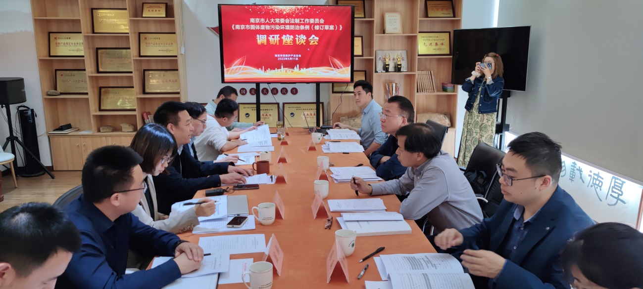 5月11日,市人大常委会法工委主任、市人大法制委副主任委员王珍祥,市人大法制委副主任委员钟连勇一行前往南京环境保护产业协会开展调研,听取该基层立法联系点及相关会员单位关于《南京市固体废物污染环境防治条例(修订草案)》的意见建议。南京环境保护产业协会副会长兼秘书长张建宁参加座谈交流。