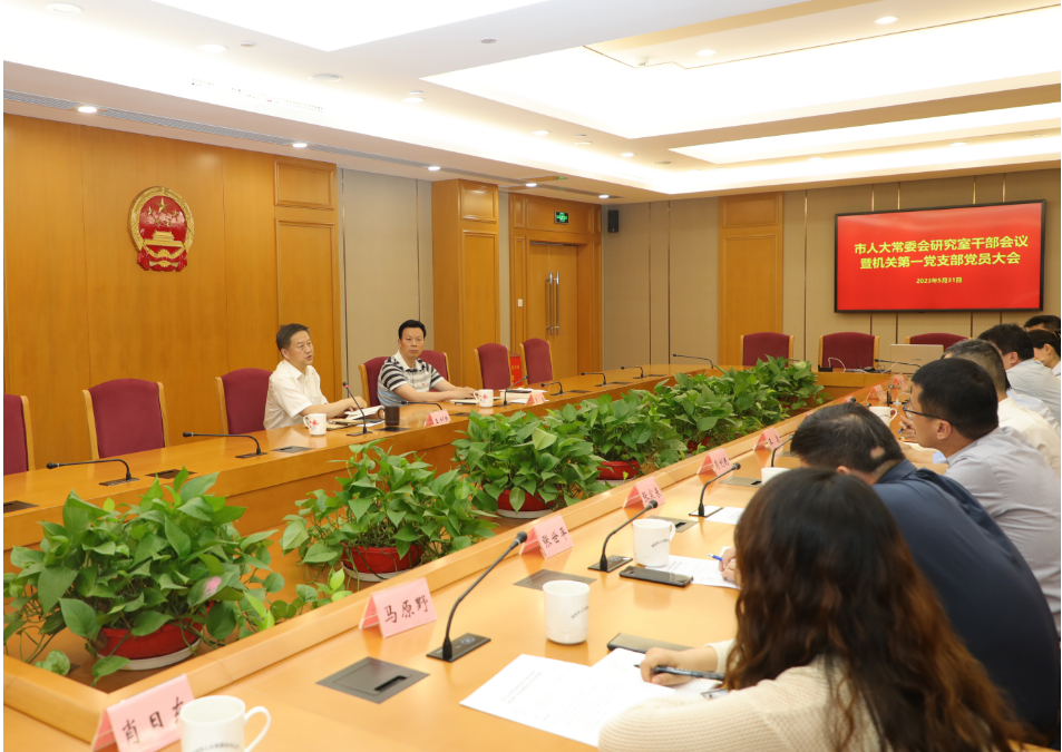 5月31日,市人大常委会研究室干部会议暨机关第一党支部党员大会召开。市人大常委会机关党组成员、研究室主任王利民出席并讲话,研究室副主任、市人大机关第一党支部书记吴德主持。研究室全体党员干部参加。