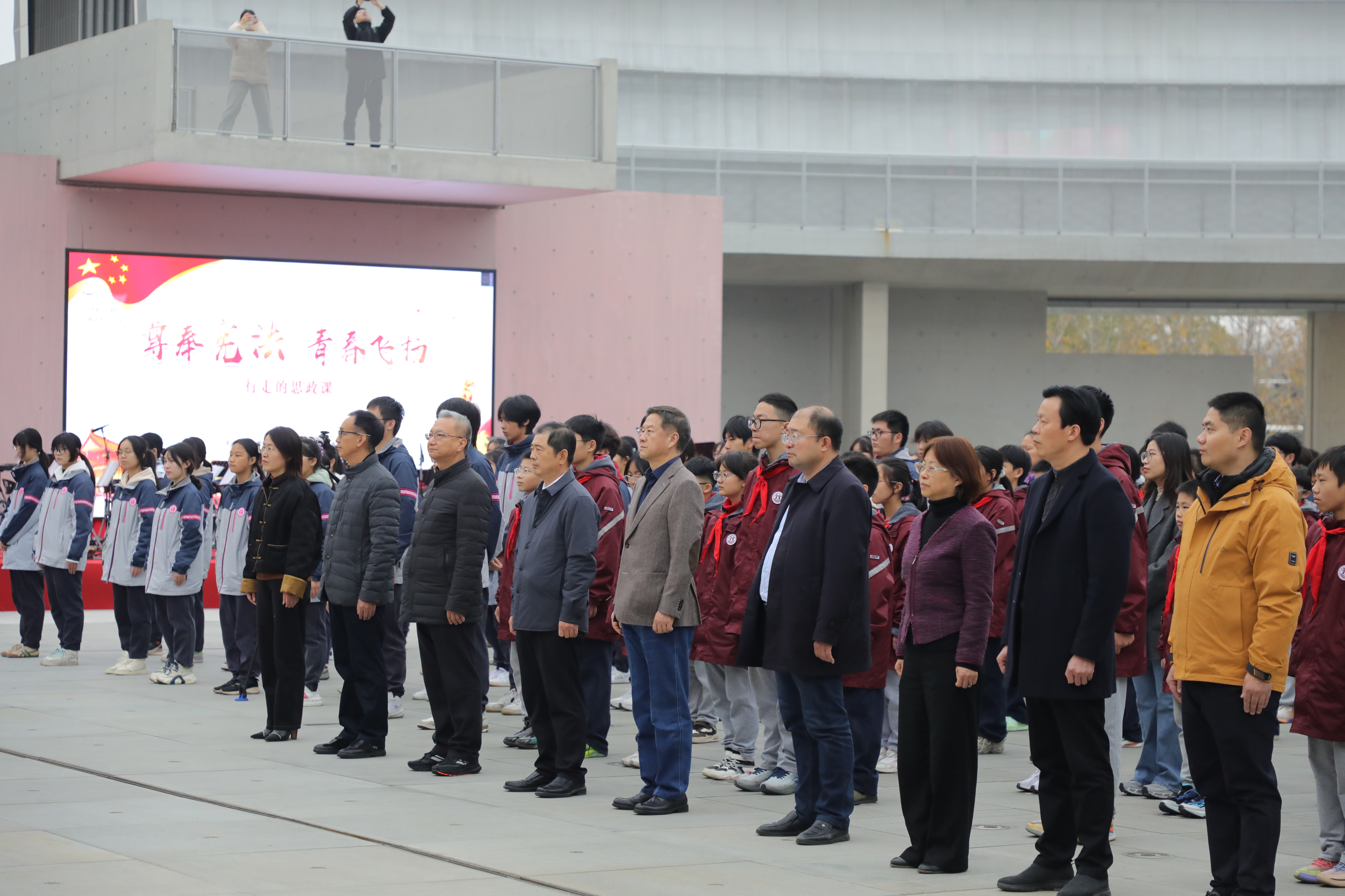 12月3日,南京宪法公园举办“尊奉宪法·青春飞扬”主题思政课,南京卫生高等职业技术学校、南京市宁海中学、南京市陶行知学校的近500名师生在这里同堂学习宪法知识,了解宪法历史,感悟宪法权威,增强宪法意识。