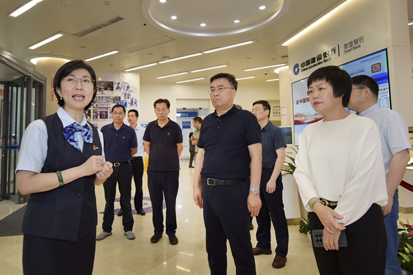 杨学鹏一行先后调研了南京科技广场科创金融服务驿站和建行南京分行新街口支行,实地察看了服务机构建设发展情况,听取了服务科技企业融资情况的介绍。