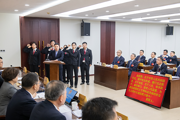 会议听取和审议了全区提升行政执法质量三年行动组织实施情况的报告、高淳人民医院高水平医院建设情况的报告;听取了区财政局、水务局、农业农村局、统计局主要负责同志履职情况报告并进行了满意度测评;审议表决了有关辞职决定;审议并表决通过了人事任免议案,依法任命秦礼琦为区政府副区长,依法任命区法院相关同志职务,现场还举行了颁发任命书仪式、向宪法宣誓仪式。
