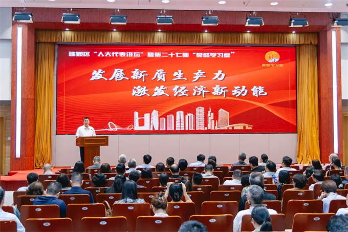 7月8日,建邺区“人大代表讲坛”暨第二十七期“莫愁学习堂”活动开讲。来自市、区两级人大代表4位主讲人走上讲坛,围绕“发展新质生产力 激发经济新动能”主题,共商建邺发展良策。建邺区委书记、区长,市河西管委会主任、党组书记姜宸,建邺区人大党组书记、区人大主任梁爱国等150余名市、区人大代表到场聆听。