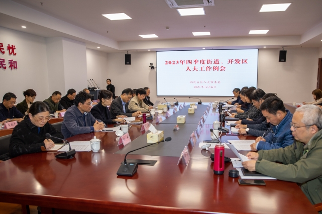 12月6日,2023年四季度街道、开发区人大工作例会在赛虹桥街道召开。区人大常委会主任杨明,副主任卞艳艳、贾乐实、褚堂桂、陈志康,赛虹桥街道党工委书记戴俊,区人大各专委、常委会各工作机构主要负责人参加会议。会议由区人大常委会副主任贾乐实主持。