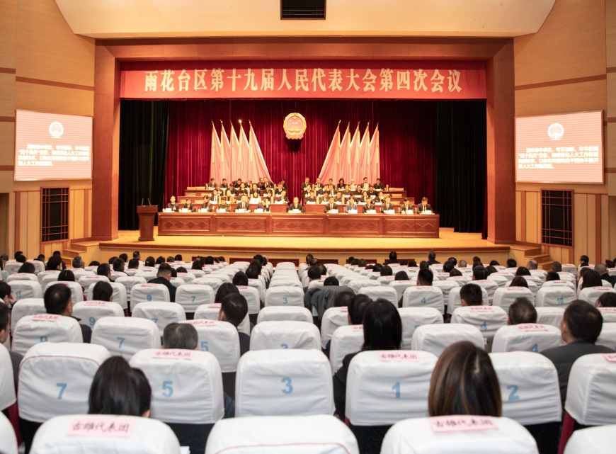 在雄壮有力的《国歌》声中,雨花台区第十九届人民代表大会第四次会议胜利闭幕。