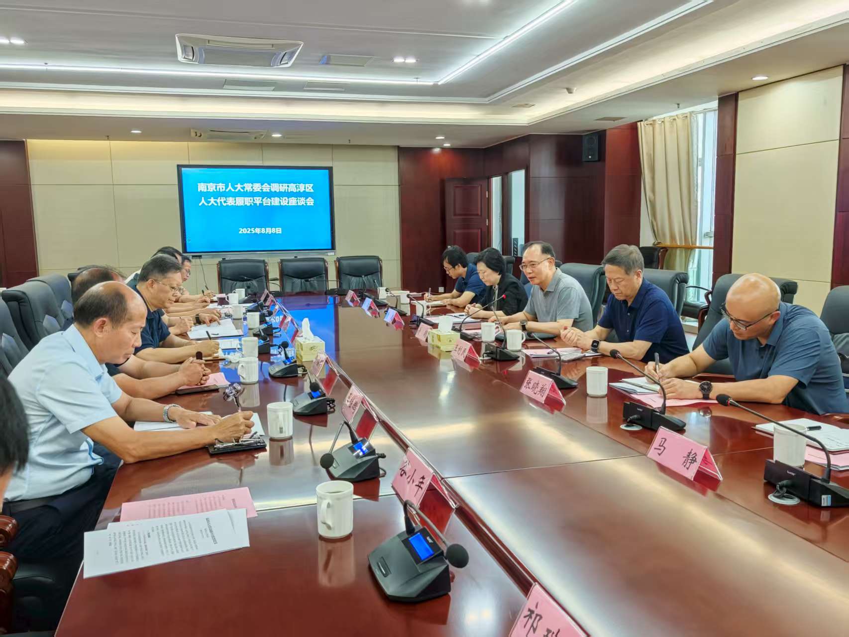 为贯彻落实习近平总书记重要讲话重要指示精神和党的二十届三中全会决策部署,围绕丰富人大代表联系人民群众的内容和形式,8月8日,市人大常委会副主任许明带队到高淳区调研人大代表履职平台建设情况,研究室主任王利民、代表工委主任袁迅、副主任张晓翔参加调研。