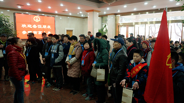 “新年快乐!”“祝你新年快乐!”在市人大机关,讲解员志愿者向大家道出新年祝福,在寒冷的冬季早晨,涌动着暖人的温情。市人大机关整洁的工作环境,工作人员热情周到的服务,以及志愿者声情并茂的现场讲解,给参观群众留下了深刻的印象,受到了大家的一致好评。市人大常委会办公厅主任于保华亲自到办公大楼门口迎接前来参观的市民朋友,有关工作人员尽职尽责,做好服务保障工作,从每一细小环节保障游客的安全顺利参观。“我觉得大院里的建筑很漂亮,像电影里的一样”,一名小学生这样跟同学说。机关大院里带着浓浓历史感的古典建筑风格,伟岸的法桐树、庄重整洁的会议厅,以及市人大机关工作人员热情周到的服务都给市民留下了深刻的印象。结伴来参观的几位社区居民说,“这里面都是市级机关办公的地方,是市领导上班的地方,我们老百姓也能走进来参观,这个活动很好,拉近了政府和老百姓之间的距离。”