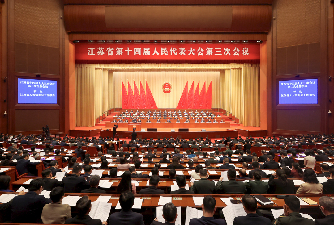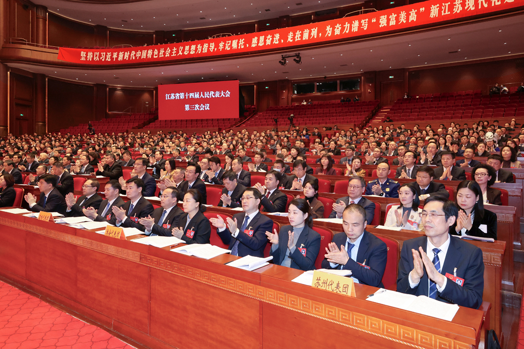 樊金龙从五方面回顾了过去一年的主要工作。一是庆祝全国人民代表大会成立70周年,在增强根本政治制度自信中把牢正确方向,全面强化党的创新理论武装,共向省委请示报告72次并认真抓好贯彻;深化“牢记嘱托、感恩奋进”学习实践活动,全省人大系统共举办3900多场人大代表讲坛,五级人大代表宣讲16000多次,代表参与率累计达38.7%;建成“江苏·人民代表大会制度展”,讲好人大制度故事。二是聚焦加快打造发展新质生产力重要阵地,系统谋划“1+N”省域法规制度,将地方金融、知识产权促进和保护、企业技术进步等作为立法重点。聚焦数据生产要素,顺应科技体制改革,加快新兴领域创制性立法;注重规划支撑保障,促进绿色转型升级,筑牢安全生产防线,强化传统产业转型升级法治供给;完善资源要素创新配置立法保障,在强化法规制度保障中展现担当作为。三是紧扣高质量发展走在前列,聚焦省委省政府八个行动方案,省市县人大联动发力,围绕产业科技创新、现代化产业体系建设、绿色低碳发展、民生改善和提高、社会治理水平提升发挥职能作用,精准助推中央重大决策和省委工作安排落地落实。四是锚定进一步全面深化改革目标任务,研究确定第一批10项重点改革任务,以重点突破带动人大各领域改革有序开展;聚焦深化省人大常委会任命人员监督工作、完善立法机制、深化代表工作、提升基层人大能力等,巩固拓展改革实效;探索推进改革破题,建立由人大专门委员会向常委会报告专项监督工作机制,推广乡镇人大监督乡镇国有和集体资产管理工作创新经验,建立代表闭会期间意见建议常态化处理反馈机制。五是围绕坚持好完善好运行好人民代表大会制度,提升人大代表议政能力、常委会集体行权能力、机关服务保障能力,完成“数字人大”省市县乡纵向贯通;建好用好1.3万个代表“家站点”履职平台,代表就近进家到站入点21.8万人次;办理24件代表议案、818件代表建议,代表建议办成率达89.7%,在深化“四个机关”建设中提升履职质效。