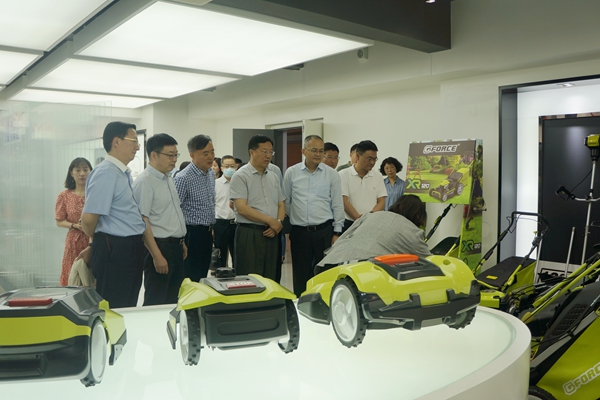 张俊副主任一行来到苏美达智能科技产业基地,在研发中心、草坪机器人制造中心、锂电池组智能车间,与相关负责人深入交谈,详细了解了能源、五金工具公司在科技创新、产品应用、数字化转型、生产设备自动化技改、绿色动力转型等方面的工作开展情况。