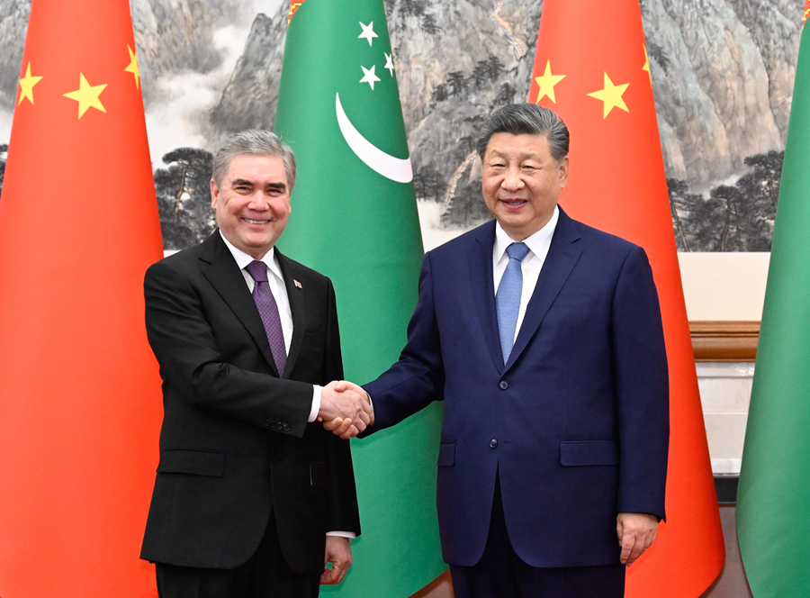 318日下午,国家主席习近平在北京钓鱼台国宾馆会见来华进行友好访问的土库曼斯坦民族领袖、人民委员会主席别尔德穆哈梅多夫。新华社记者 翟健岚 摄